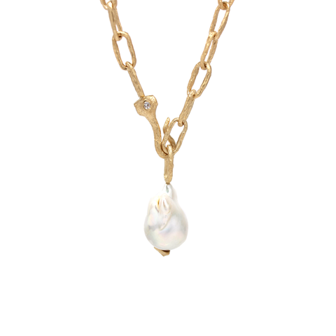 18K позолоченная медь, натуральный пресноводный барочный жемчуг, массивное ожерелье-цепочка с кубическим цирконием