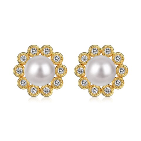 Лидер продаж, дешевые простые Позолоченные 925 стерлингового серебра 9 мм, серьги-гвоздики с пресноводным жемчугом для женщин